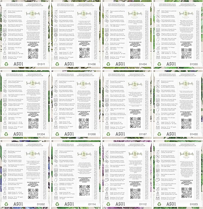 Seed Needs Herb Seeds Variety Pack Culinary Herb Collection (12 Individual Packets for Planting Indoors or Outdoors) Grow Your Own Herb Garden - Heirloom, Non-GMO