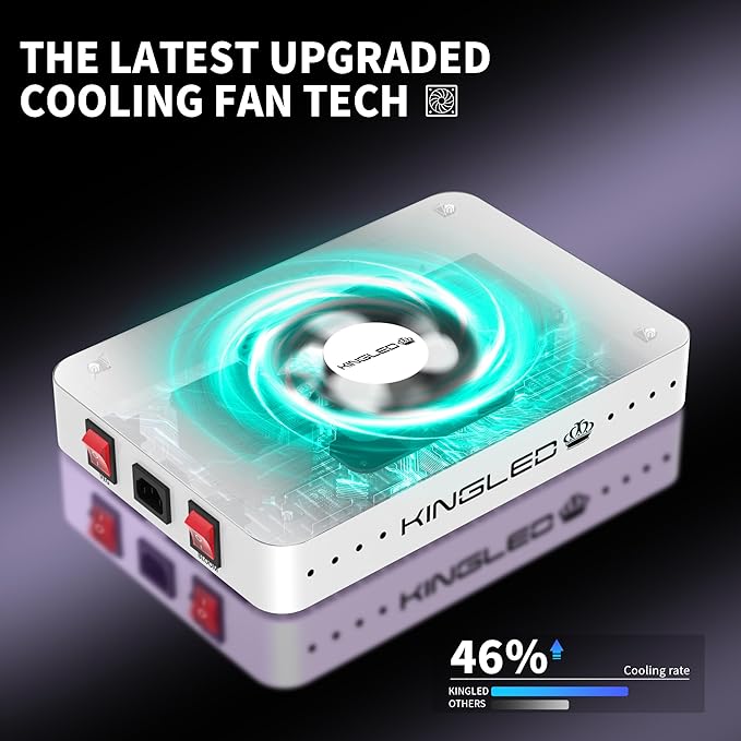 - Efficient Heat Dissipation: The aluminum heat sink and metal construction make excellent heat dissipation, keeping the temperature within optimal levels (50°f to 60°f); This cooling system prevents overheating, allowing the light to work efficiently without harming plants; Having the high-speed mute fans, the light remains quiet and stable, increasing its lifespan