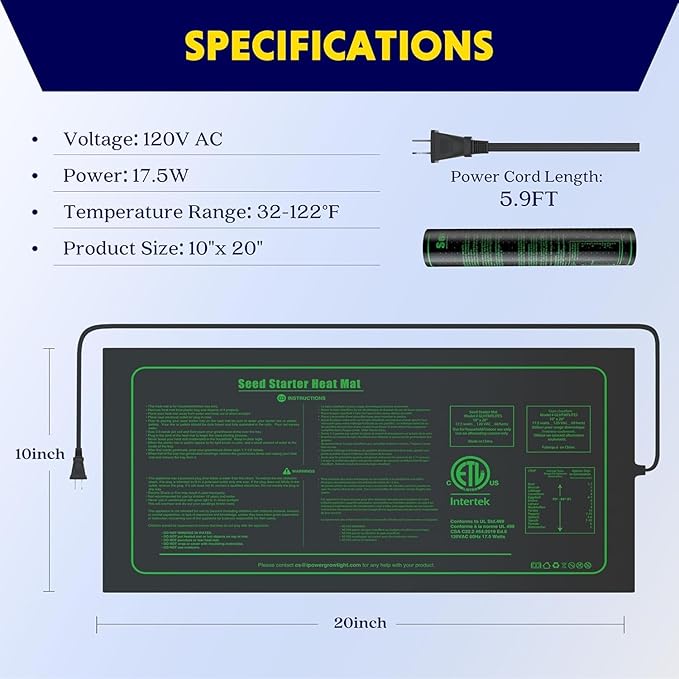 - Package include: 1 pack 10 X 20 inch seedling heat mat