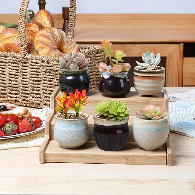 - Ceramic Planters: Set of 12 small succulent pots made from glazed ceramic with distinct glaze painting for elegant home decor.