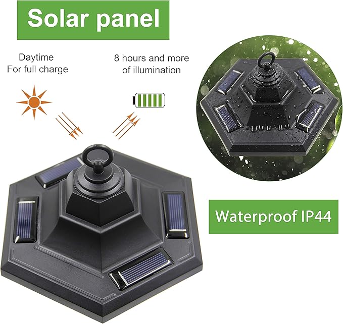 - Tips: When you receive hanging solar lights, please remove the tab then cover the solar panel by hand to keep them in the darkness to check whether the lights will light up or not
