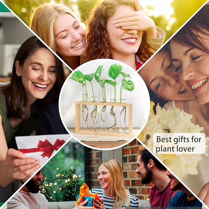 - Plant Propagation Station:Cool glass propagation tubes! An eye-catching novel design tube vase for smaller plants, looks gorgeous hanging on the wall. Besides, you can also put some flowers in them and place them on the table for ornament. Great propagators: Prefect for propagations and cuttings! Propagates your plant's babies in style, slim glass container provides plenty of room for plant's roots and all are visible for observing its growth condition.