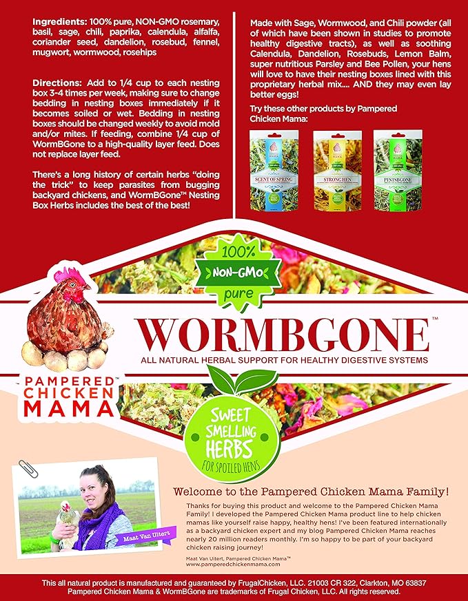 Non-GMO Backyard Chicken Nesting Herbs (1.25 pounds) - Naturally Keep A Clean Coop Your Hens Will Love