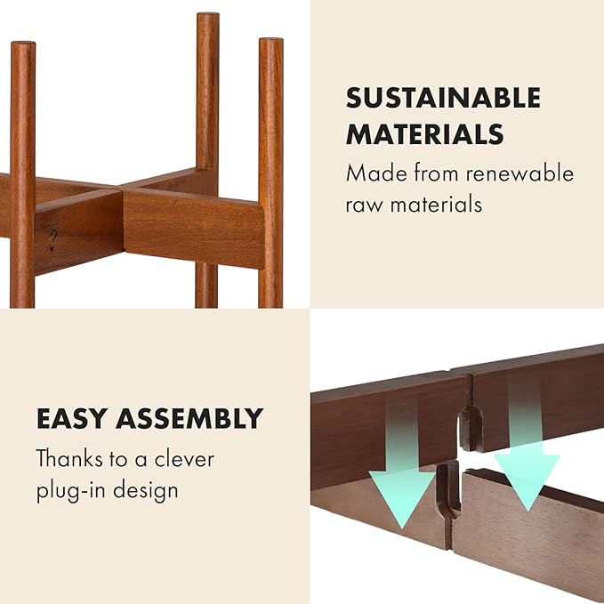 Fox & Fern Mid Century Plant Stand — 10 Inch Fixed Size Wooden Plant Stand for Indoor Planters; Raised Flower Pot Holder for Indoors; Plug In Design; Two Height Options; Easy to Assemble - Acacia