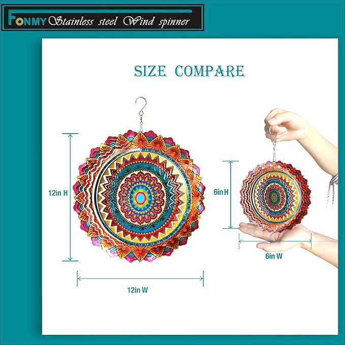 Fonmy Stainless Steel Wind Spinner Worth Gift Indoor Outdoor Garden Decoration Crafts Ornaments 6 Inch Multi Color Mandala Wind Spinners