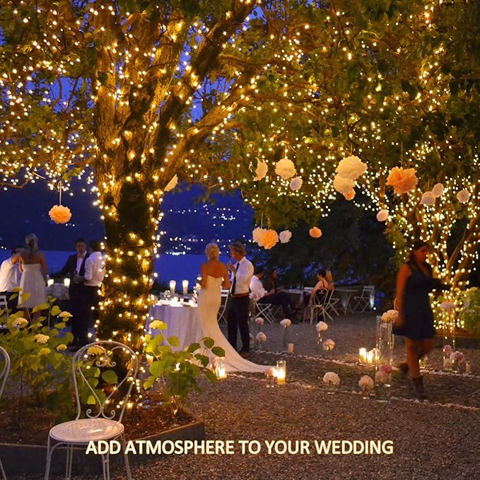 - 【Widely Used Solar String Lights for Outside 】Our solar led string lights for outside will emit a bright warm white light at night. When you decorate it on trees in your garden, it will be the star of the season's Wonderland-themed tree; Install under the eaves, the string lights for outside solar powered present you with a warm home atmosphere. Our solar tree lights outdoor waterproof are also great for patios, decks, fences, parties, wedding, parks, Xmas decorations, and more