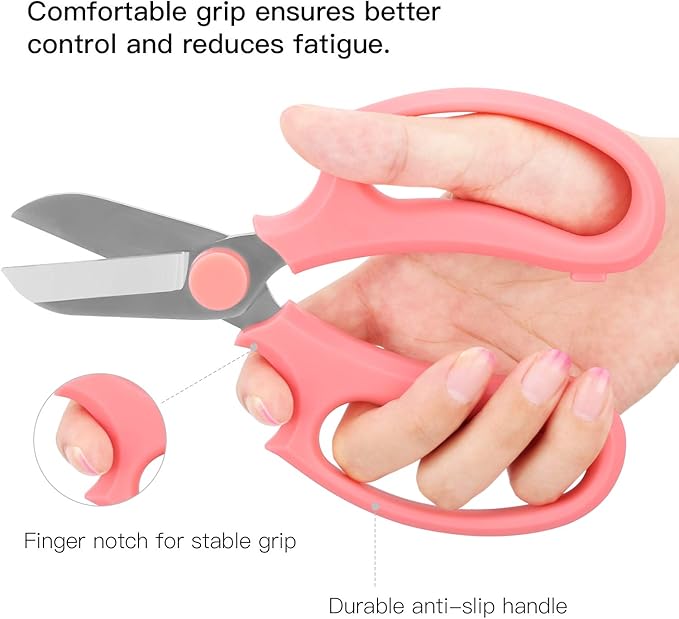 Flower Scissors, Strong Floral Shears, Premium Steel Garden Pruning Shears Floral Fruits Leaf Scissors Hand Pruner Snip Trimming Tool for Gardening Flower Arrangement, Pink