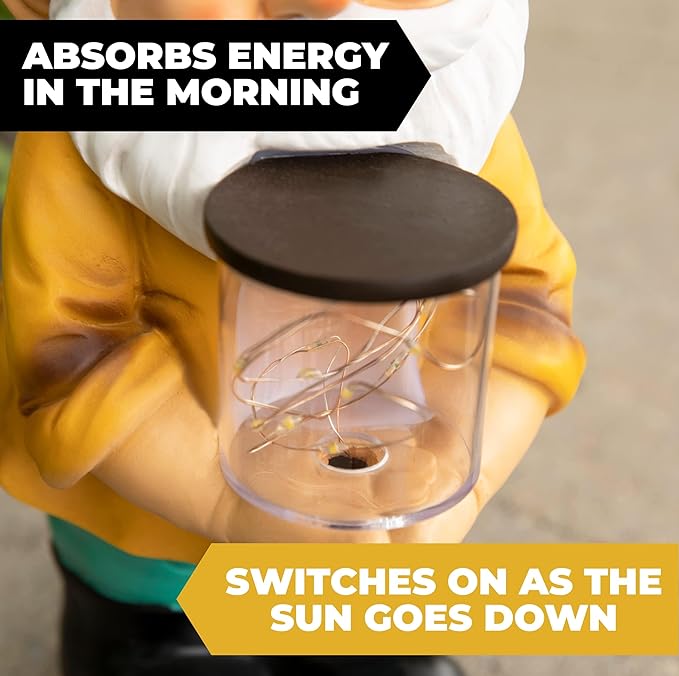 - Gnome Solar with Solar Powered LED Light- This adorable Firefly garden gnomes for outside garden & Lawn with LED light will warm your heart and add vivid to your garden and outdoor Patio.
