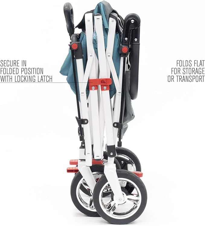 Creative Outdoor Wagon for Kids Push Pull Collapsible Stroller Folding Cart | Silver Series | Beach Park Garden & Tailgate | Teal
