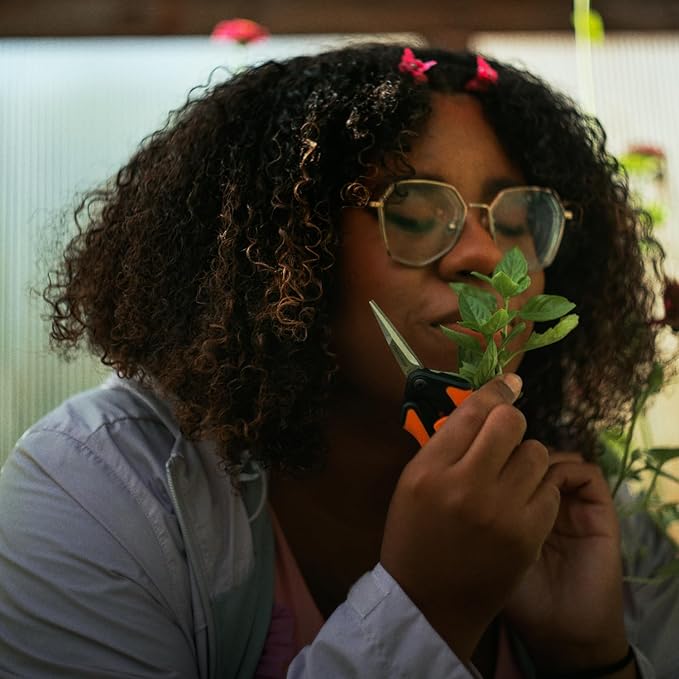 Fiskars 6" Pruning Scissors for Flower Stems, Herbs, Buds, and Small Plants, Garden Snips with Stainless Steel Blades, Gardening Trimmers with Comfortable Handle