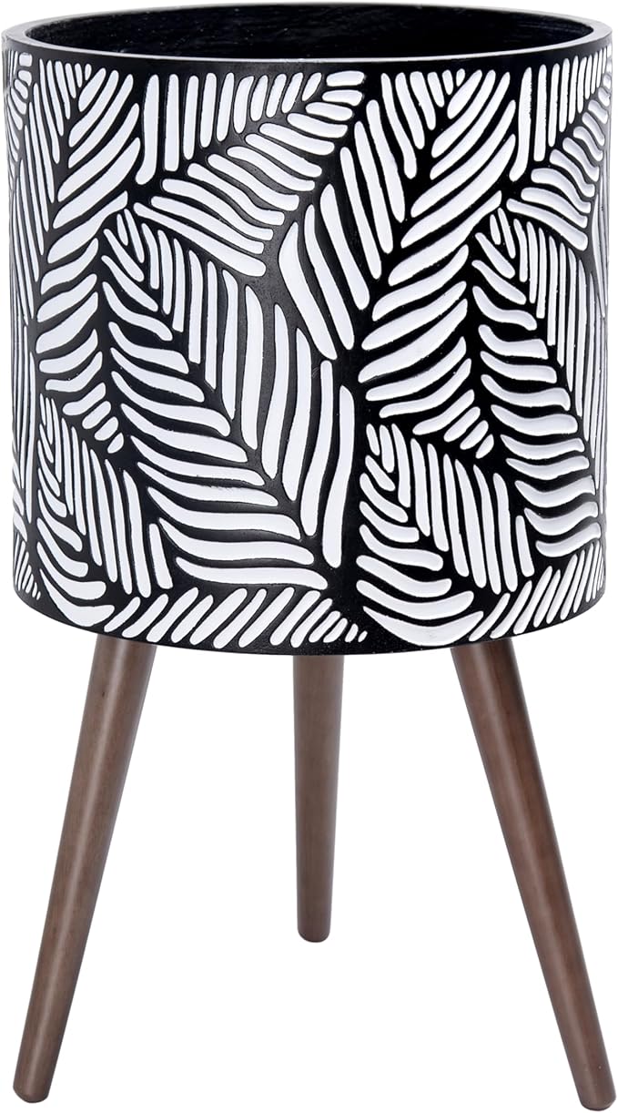 D'vine Dev 14 Inch Planter Pot with Stand, Mid-Century Tall Plant Pot with Legs for Indoor Plants, X-Large, White/Grey, 88-L-D-7