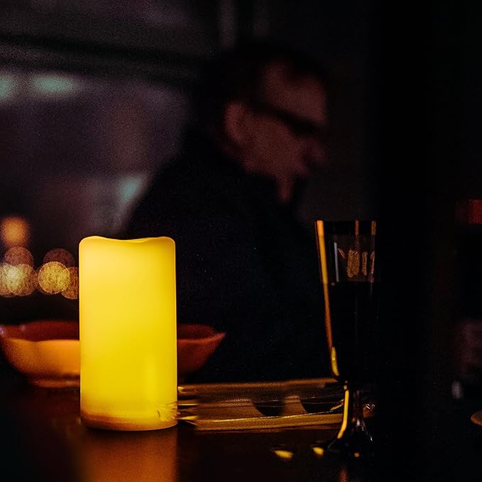 - Remote Controlled. Use the remote control to turn on and off the battery-operated pillar candles, set timer, select light mode (flickering or steady light) and adjust the brightness of the candle lights. The working distance of the remote control is around 20 feet. The remote control is very useful when you want to operated the battery candles from a short distance or when the candles are not easy to access.