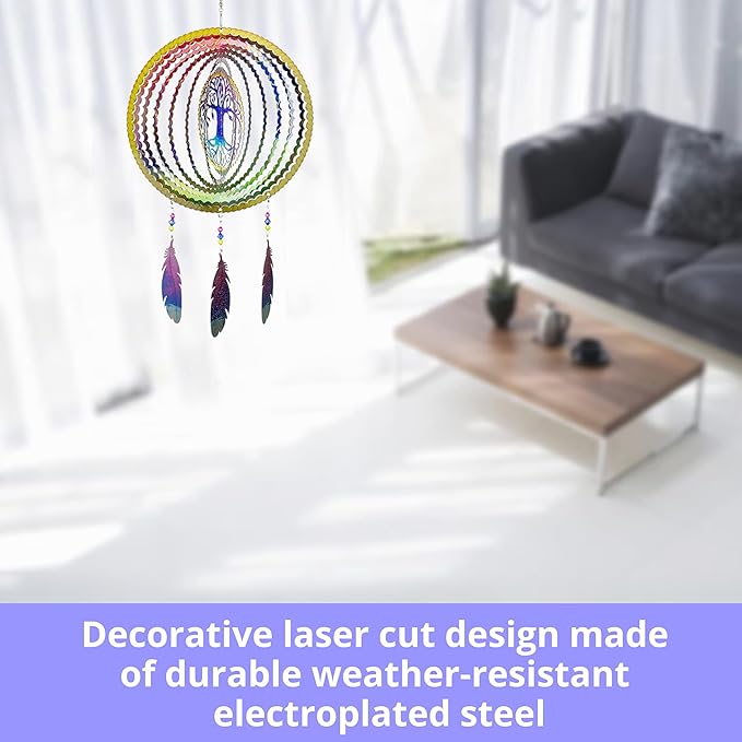 - Weather-Resistant Durability: Crafted from high-quality electroplated steel metal, this large dream catcher wind spinner is built to withstand the elements, ensuring it remains a resilient outdoor adornment for years.