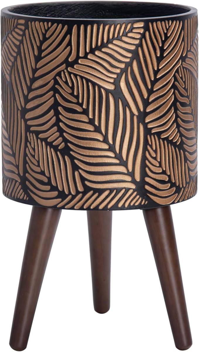 D'vine Dev 10 Inch Planter Pot with Stand, Mid-Century Tall Plant Pot with Legs for Indoor Plants, Medium, Bronze/Grey, 88-L-B-6
