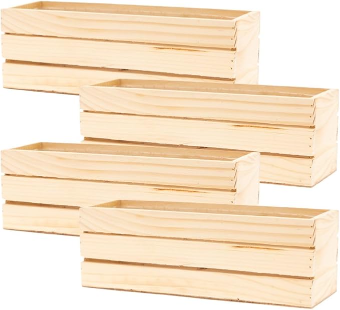 Wood Planter Box with Wine Crate Styled, 12x4 Inch Rectangular, Rose Wood, Plastic Liner, Garden Centerpiece Display, Wedding Flowers Holder, Home and Venue Decor (12x4 Wine Crate Set of 4, Rose Wood)