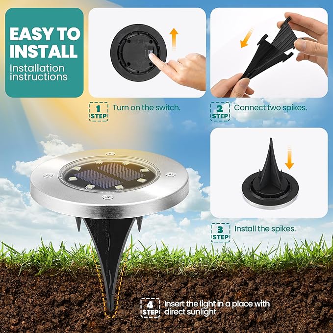 GIGALUMI 8 Pack Solar Ground Lights, 8 LED Solar Powered Disk Lights Outdoor Waterproof Garden Landscape Lighting for Yard Deck Lawn Patio Pathway Walkway (White)