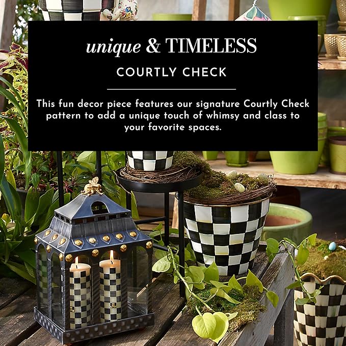 - ELEGANT OUTDOOR DECOR: Our planter pot decor is “hoppy” to add a touch of whimsy to your space. It is hand-painted in our signature black-and-white Courtly Check pattern and finished with a gilded gold crown.