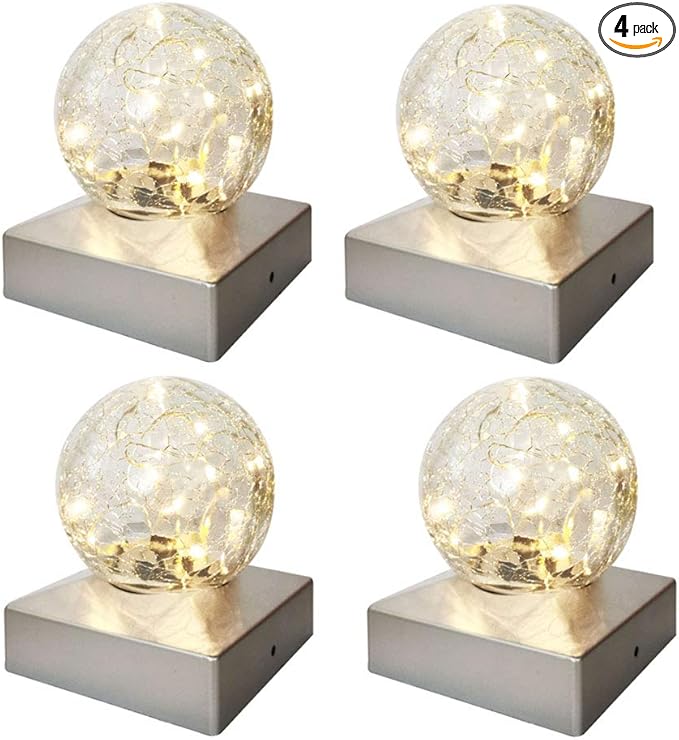 - PRODUCT SPECIFICATIONS: 10 pcs copper wire LEDs in each post cap light with an appealing crackle glass design, it makes your home stand apart. All the post lights are made by high efficient solar panels and high quality crystal glass.