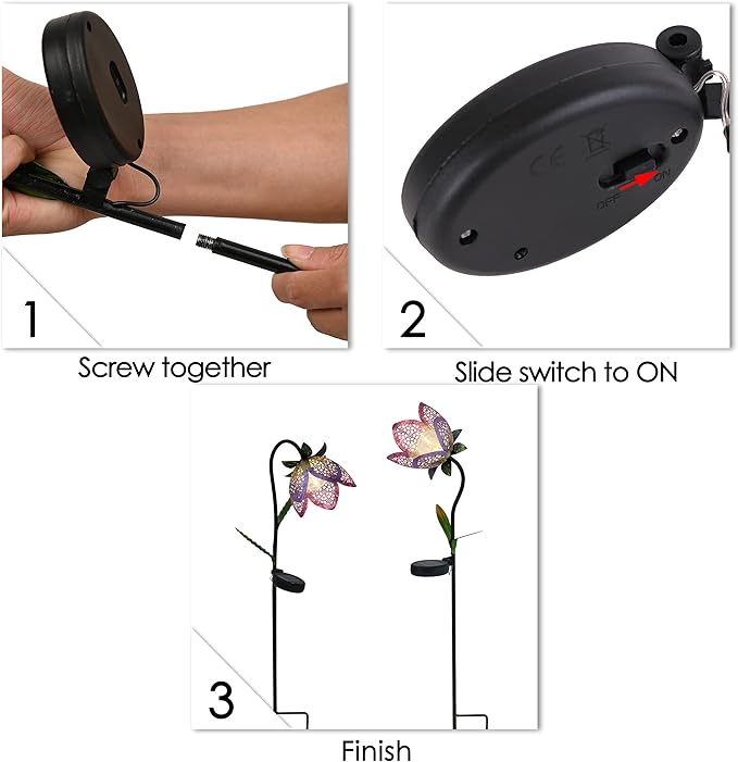 - 【Easy to Assemble】This garden flowerbed garden decor can be assembled manually without tools and you can place it in any outdoor location, it is the perfect decoration for gardens, lawns, paths, patios. Tips: make sure that the solar power is charged in sunlight for 1 day and the button is "ON" when in use.