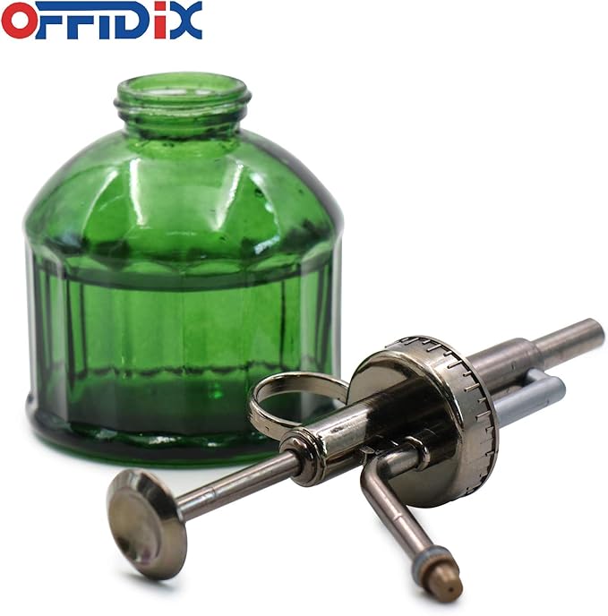 OFFIDIX Glass Plant Mister, 6.3 Inches Tall Vintage Style Spritzer Bronze Plastic Top Pump One Hand Watering Can Indoor Plant Spray Bottle for Garden, Plants, Cleaning (Dark Green)