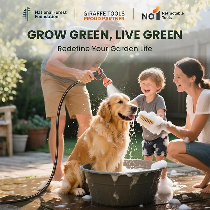 - Lock at Any Length: A 130 foot hybrid hose that can be locked to any length is pre-installed on the Giraffe hose reel, ensuring that every area of your garden is covered.