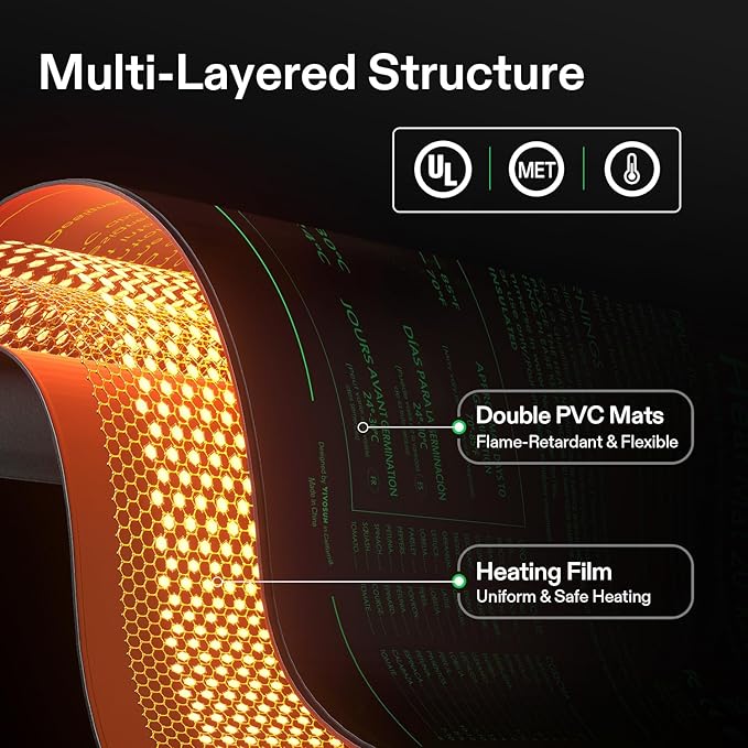 - Innovative Heating: With the radiate far-infrared light wave, this seeding heat mat makes the heat source softer and provides enough heat, which can be heated up to 40 ℃(104℉)at an ambient temperature of 20-25 ℃(68-77℉)in minutes; We recommend using it with the VIVOSUN thermostat controller and humidity dome