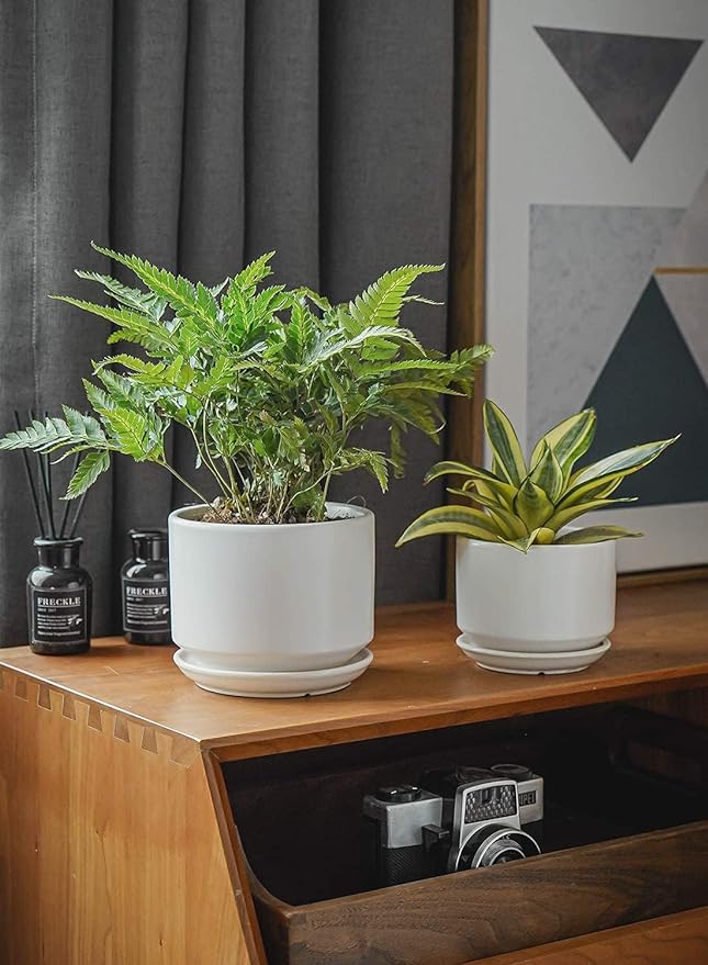 - Contemporary Style: These elegant and modern pots fit into any decor; Great for decorating windowsill, tabletop, shelf, bedroom, kitchen, garden, and outdoor patio; Classic ceramic planters for indoor plants with good becoming tray, easy and elegant wax modern design with different color endings