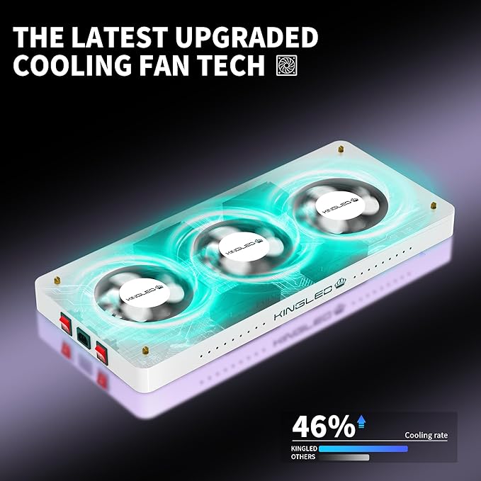 - Efficient Heat Dissipation: The aluminum heat sink and metal construction ensure excellent heat dissipation, keeping the temperature within optimal levels (50°f to 60°f); This cooling system prevents overheating, allowing the light to work efficiently without harming plants; Having the high-speed mute fans, the light remains quiet and stable, increasing its lifespan