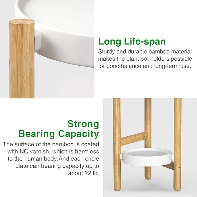 - š·ćMade of 100% solid bambooćEspecially durable and sturdy. The 3 round plant pots are made of carbon steel, which is more advanced and sturdy than plastic ones, making each circle plate more anti-rust, easy to clean, better bearing.