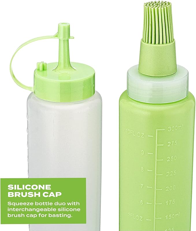 - ⭐ Duo Purpose Bottles: The OUII Flat Grill Accessories Kit comes with 2x squeeze bottles so you can fill one with oil and the other with breakfast pancake mix for your funky pancake art! We also give you a food grade silicone grilling brush head for the squeeze bottle. allowing you to easily apply sauces, oils, and other liquids to your food while grilling or cooking.
