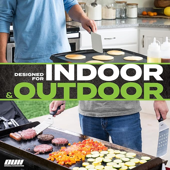 - ⭐ Our purpose-made spatula tool set is an essential addition to any camping kit, providing the perfect tools for cooking up a storm on any day. With the griddle spatula trio, locking tongs, and squeeze bottle duo, you'll have everything you need to make delicious meals on your camping trip. Plus, the set comes with S-hooks for easy storage. Don't settle for mediocre campfire cooking - upgrade to The OUII Flat Griddle Set and experience the joy of cooking delicious food wherever you go!