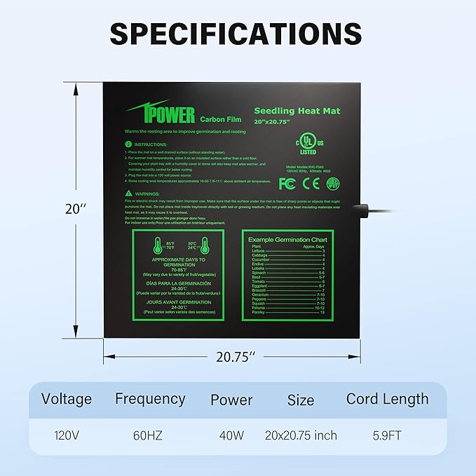 - Package Included: 1 pack 20'' x 20.75" seedling heat mat.