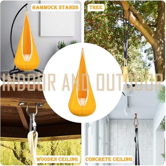 - ★ Easy to Install & Storage - This indoor pod swin is easy to hang (sturdy trees, posts, swing sets, or ceilings) . It is a fun piece of furniture that can be easily taken down and stored away at any time to make more room.