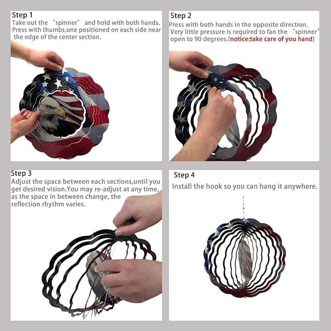Patriotic Wind Spinner Metal Garden Decor Outdoor 3D Stainless Steel Sculptures Kinetic Hanging Whirligigs Yard Art Decorations Backyard Indoor Patio Lawn Ornaments Clearance Sun Catcher Windmill