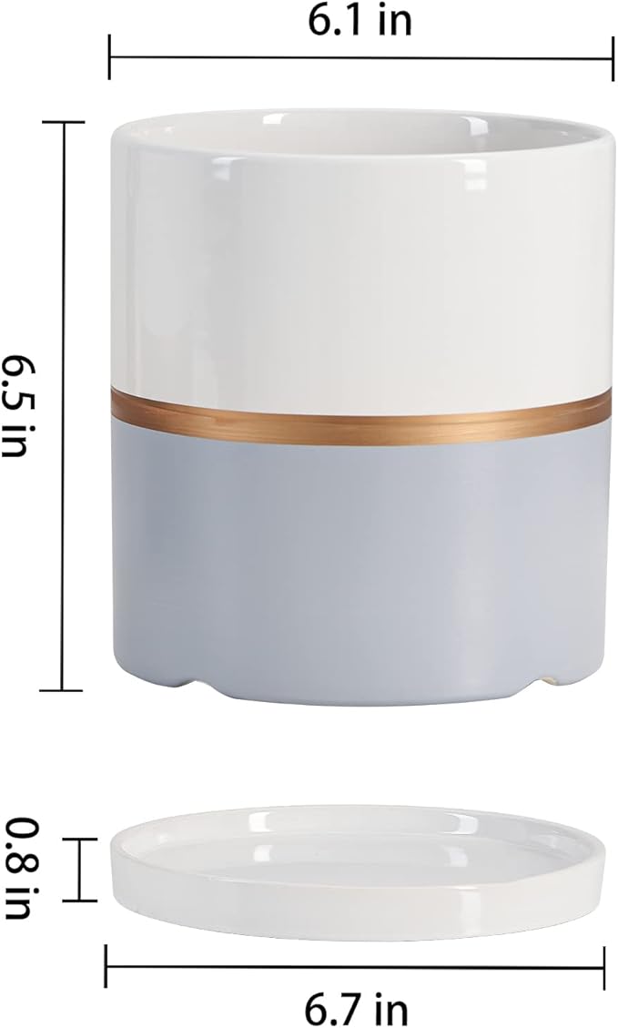 Ekirlin 6 inch Plant Pot - Ceramic Flower Planters Indoor - Modern Succulents Containers with Drain Hole Saucer, Decorate Home, Office & Outdoor (Grey)