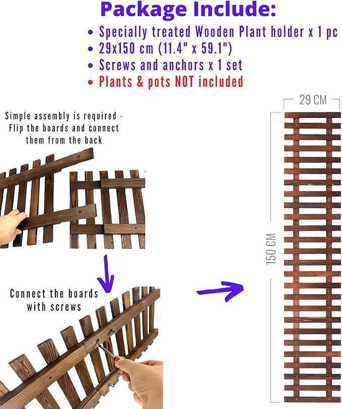 - Tall trellis: 29x150cm (11.4" x 59.1") x 1 pc. Pick the right size for your garden to prevent unpleasant experience and potential wastage of resources. Plants, flowers, pots, decorations are NOT included