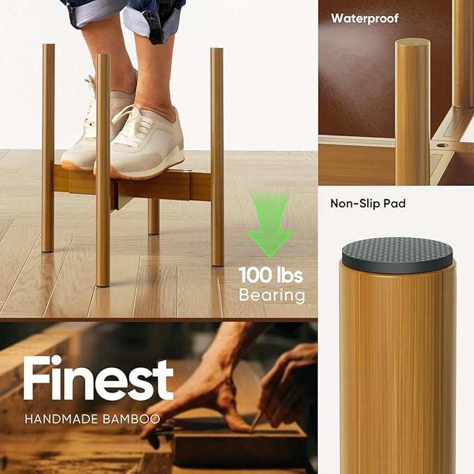 - 【Strong and Durable】100% handmade bamboo and wood plant stand; sturdy and durable; easy to support large size heavy flower pots