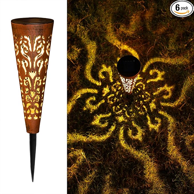 Go2garden 6Pcs Garden Solar Lights Outdoor Stakes Decorative Lighting for Yard, Pathway, Patio Decor Lawn Ornament (Red Copper)