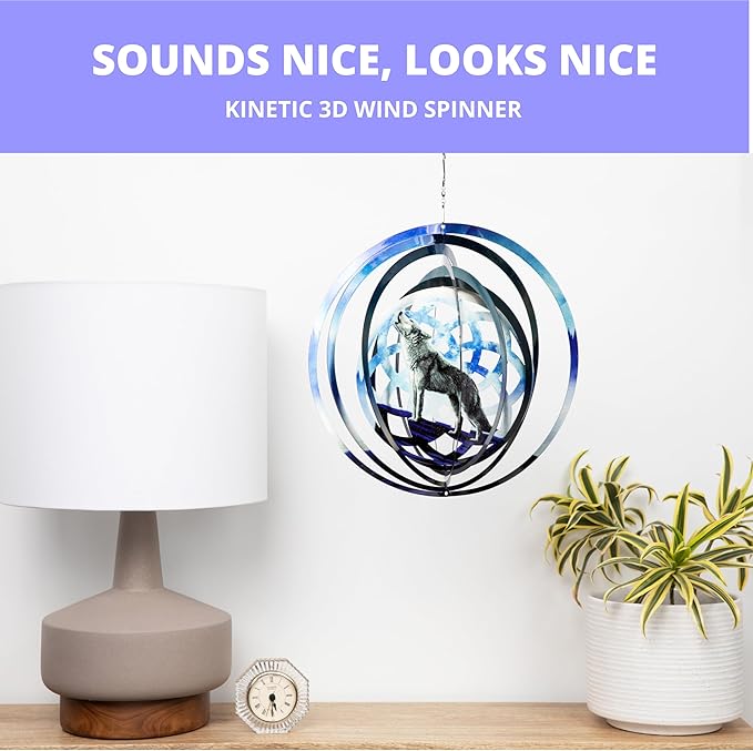 VP Home Wolf Dreamcatcher Kinetic Wind Spinner for Yard and Garden Wind Spinner Outdoor Metal Large Hanging Wolf Decor 3D Garden Art Wind Sculpture Spinners
