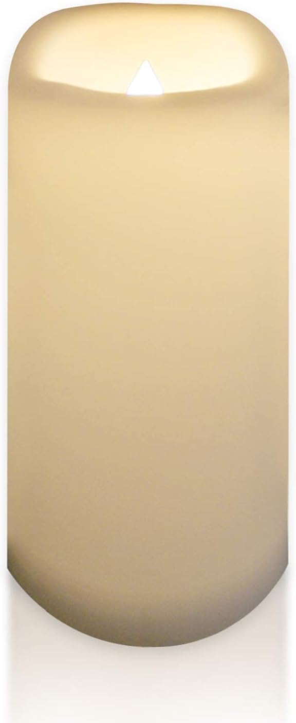 - Truly waterproof and large sized outdoor candle. The plastic battery candle is waterproof and designed for outdoor use to decorate your garden, yard, patio, swimming pool, or an outdoor activity such as a BBQ party. The resin candle can be used indoor to decorate your fireplace and rooms. The LED candle is measured 4” in diameter, 10” in height and suitable for large hurricane lantern and whenever big outdoor candles are needed. Unlike wax candle, plastic candle never melts when used outside.