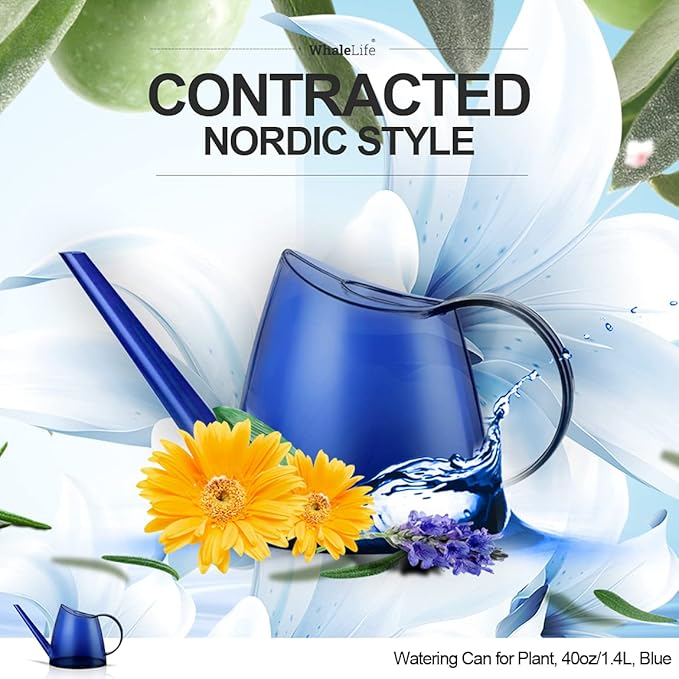 WhaleLife Indoor Watering Can for House Bonsai Plants (1.4L, Blue)
