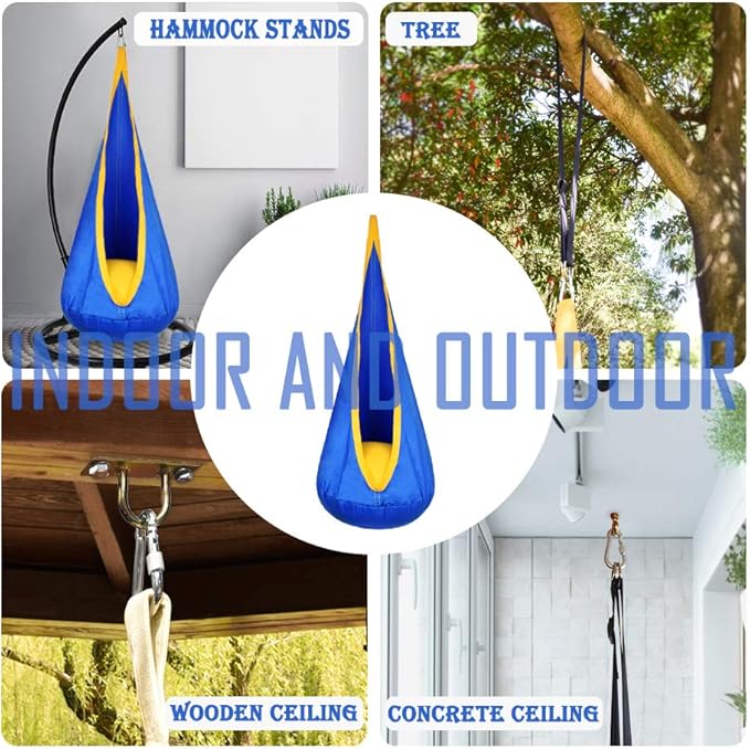 - ★ Easy to Install & Storage - This indoor pod swing is easy to hang (sturdy trees, posts, swing sets, or ceilings) . It is a fun piece of furniture that can be easily taken down and stored away at any time to make more room.