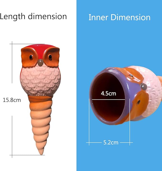 - 【Easy to Use】① Fill the bird watering bulbs with water; ② Use other tools to dig a hole in the soil and then insert the watering owls into it.