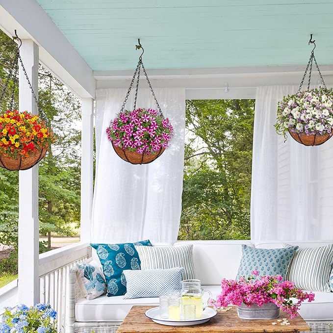 - Wide Applications: Hanging basket planter is suitable for all plants, like flowers, grasses, mosses, succulents, cacti. These hanging plant baskets can be hung in your front porch, ceiling, doorways, windowsills, balconies, garden and fences to make your life more vibrant and beautiful