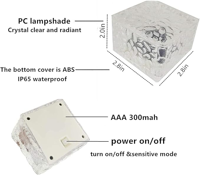 - Easy to use Solar Brick Light: Our Solar Ice Cube Lights Outdoor Waterproof are easy to install without wiring, and the automatic light sensor will automatically turn them on and off. Please remember to turn on the switch to "ON" after receiving this LED landscape light to make sure it is It can be charged under the sun and light up your yard when night falls
