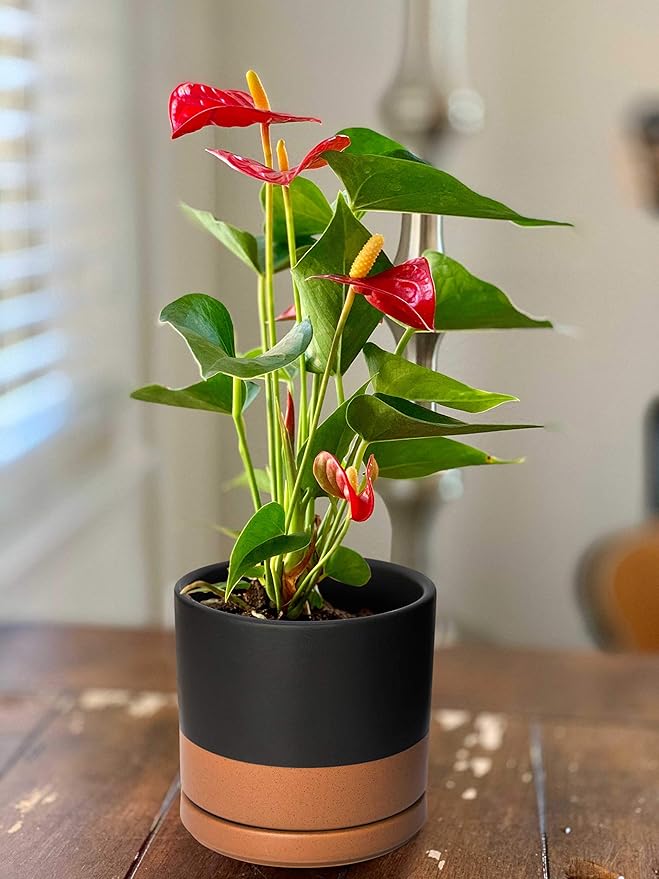 - Fitting/matching ceramic earthenware indoor planter pot; ceramic tray/saucer Included.