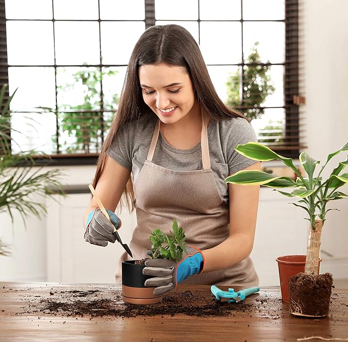 - Planter pot with drainage hole, mesh drainage net and protective scratch pad included.