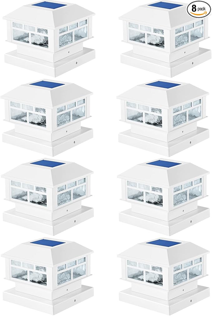- 【Extensive application scenarios & Weather-resistant】The solar post lights outdoor waterproof IP44 and anti-septic, anti-rust.No worries about rain, snow, frost or sleet. Provide your family a happy time in the garden and beautiful garden party with your friends.Don't Hesitate About Color Selection Anymore. solar post caps lights With dual light sources, you can use the warm light to add a cozy ambiance to your patio, or the bright white light for a modern look.