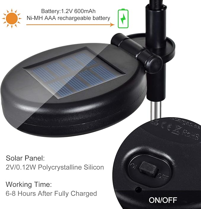 - 【Easy Installation】-- Just insert the solar light into ground under the sunlight without shade. No wiring required and provide a calming color light show anywhere throughout the night.