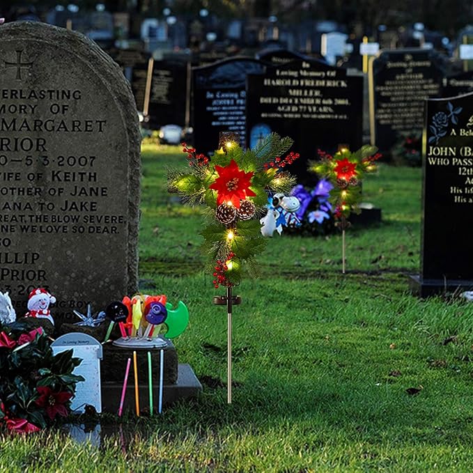 - 【Christmas Theme Decoration】-- Stake this solar lighted cross at the grave site of a loved one at Christmas time. It's a thoughtful way to honor their memory during the holidays